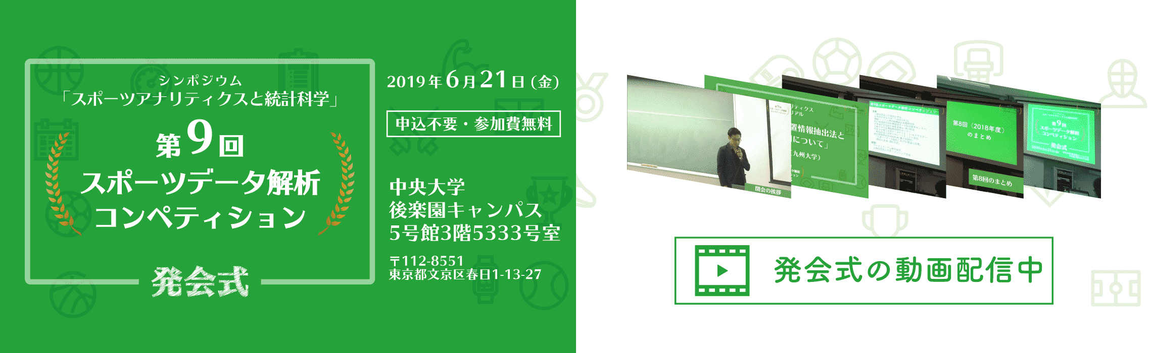 先日行われた第9回スポーツデータ解析コンペティションの発会式の動画を公開いたしました。下記のリンクよりご視聴ください。